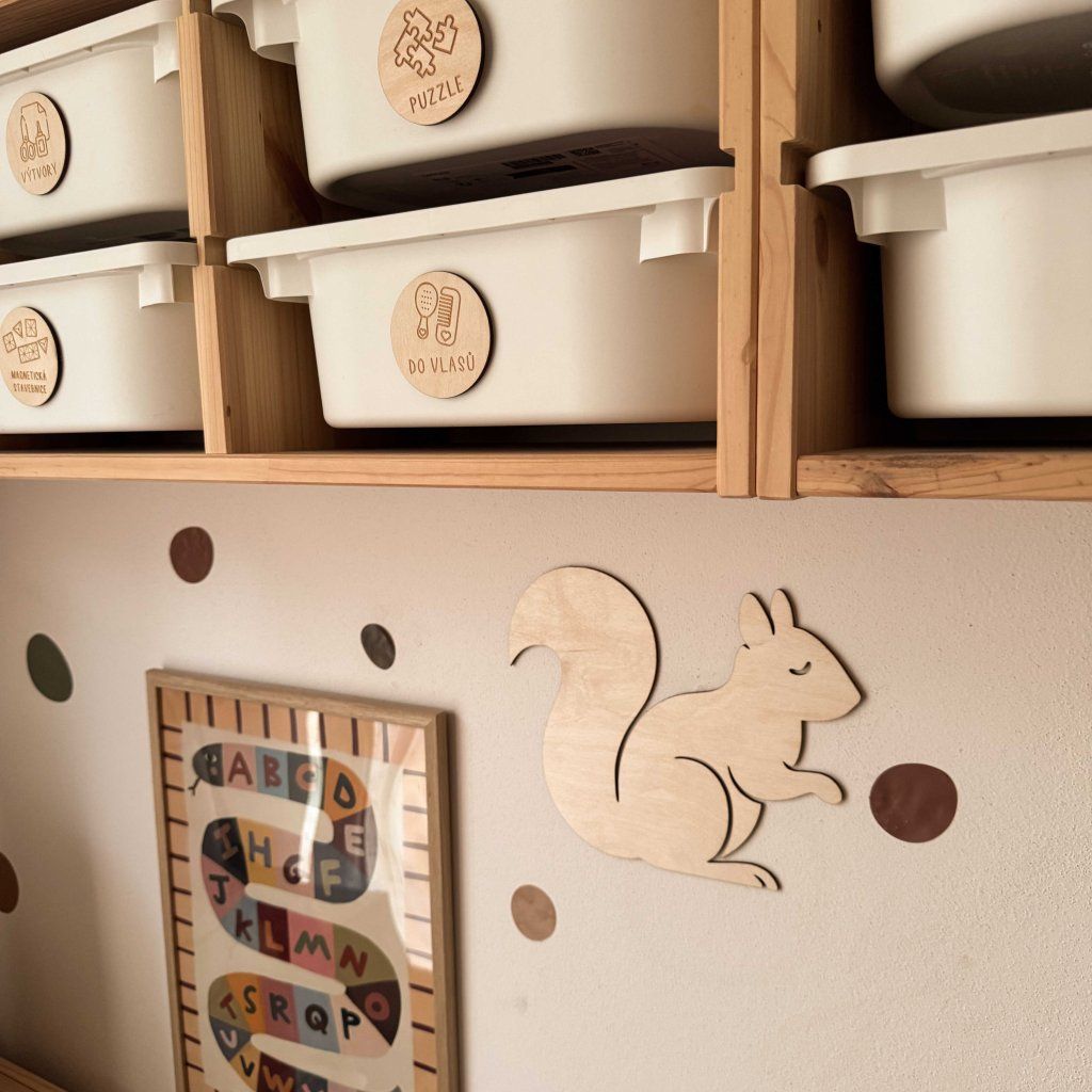 Dřevěná veverka na stěnu pokojíčku Woodify