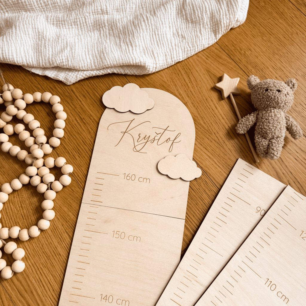 Dřevěný metr na stěnu Woodify 3D Mráčky