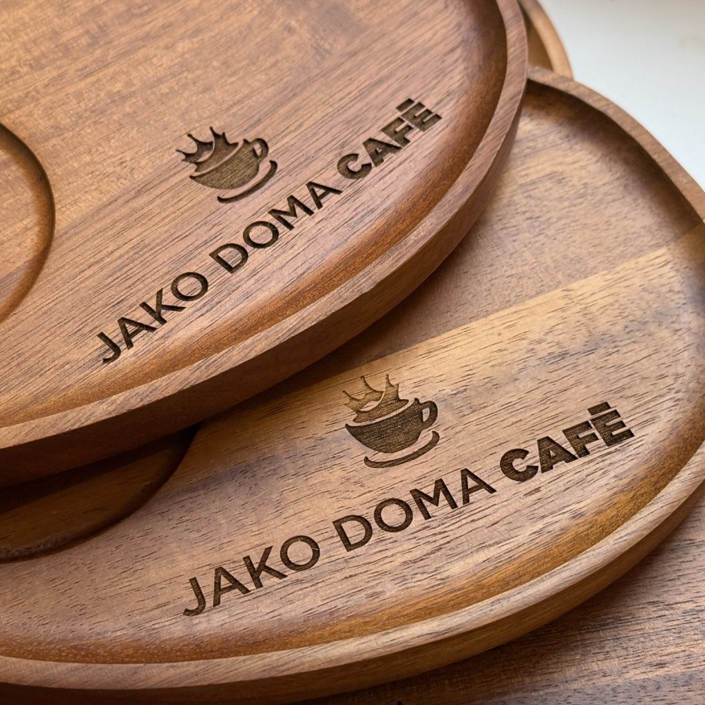 Dřevěný podnos na kávu s logem Vaší firmy zaujme na první pohled (rozměr a umístění loga je samozřejmě individuální, dle Vašich představ). Jemná kresba akáciového dřeva potom jen podtrhne jedinečnost Vašeho podniku.