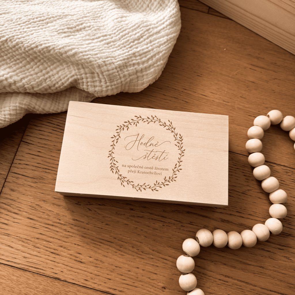 Pro dlouhodobé zachování kvality našich vzpomínkových boxů doporučujeme chránit dřevo před přímým slunečním zářením a vlhkostí. Upozorňujeme, že dřevo jako přírodní materiál může citlivě reagovat na silné teplotní výkyvy.