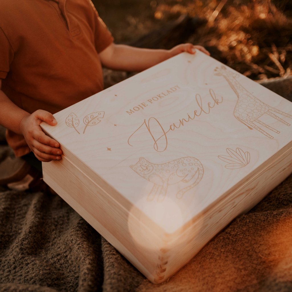 Dřevěný vzpomínkový box se jménem Woodify Safari