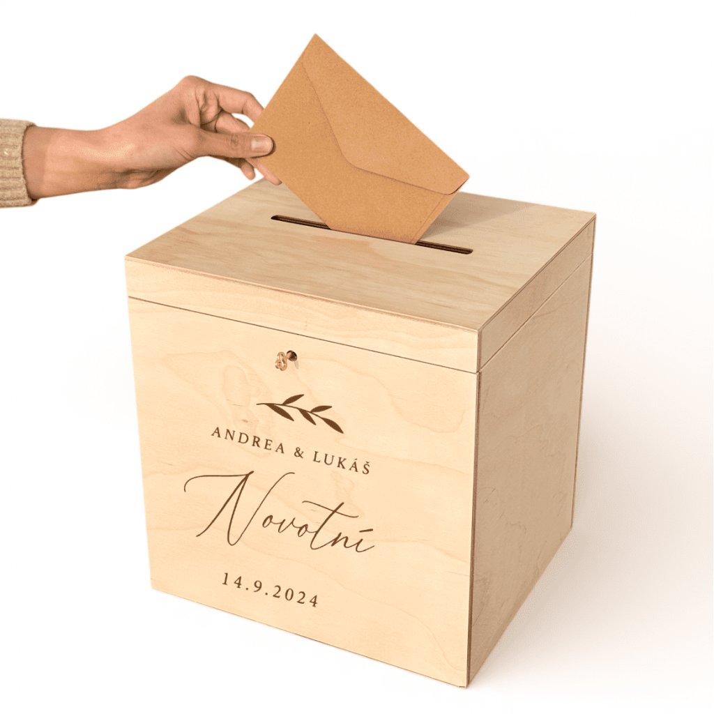 Dřevěná svatební truhla Woodify je ideální volbou pro všechny, kteří hledají svatební box na obálky, truhlu na svatební přání, personalizovanou svatební krabičku ze dřeva, gravírovanou svatební dekoraci nebo originální svatební doplněk na svatební stůl. Kombinace přírodního materiálu, kvalitního řemeslného zpracování a možnosti personalizace dělá z této truhly nejen krásnou svatební dekoraci, ale také hodnotnou vzpomínku na váš svatební den.