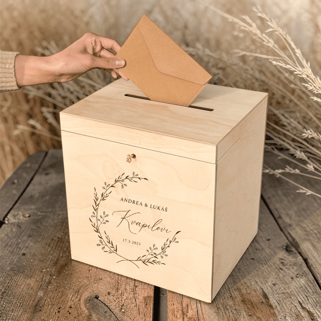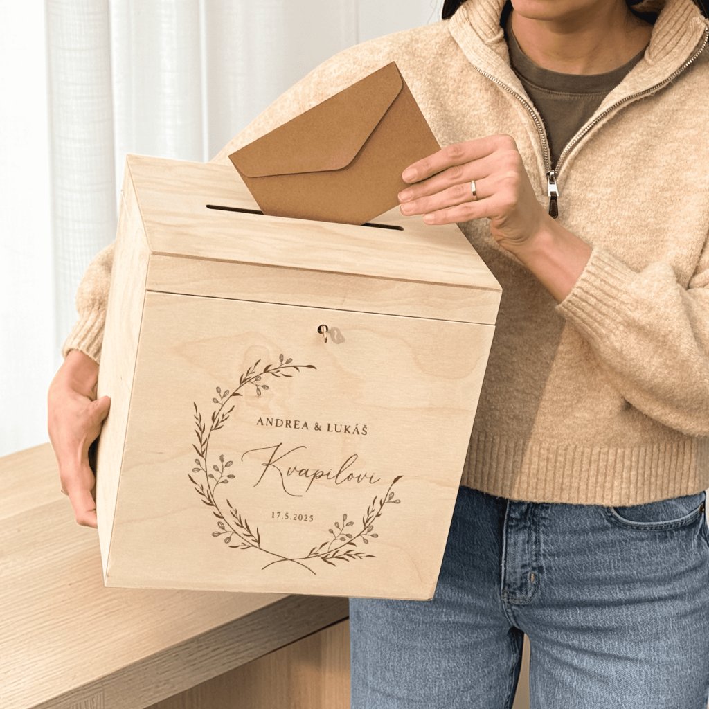 Dřevěná svatební truhla Woodify je ideální volbou pro všechny, kteří hledají svatební box na obálky, truhlu na svatební přání, personalizovanou svatební krabičku ze dřeva, gravírovanou svatební dekoraci nebo originální svatební doplněk na svatební stůl. Kombinace přírodního materiálu, kvalitního řemeslného zpracování a možnosti personalizace dělá z této truhly nejen krásnou svatební dekoraci, ale také hodnotnou vzpomínku na váš svatební den.